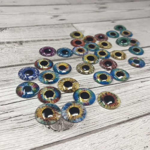 These beautiful glass eye cabochons are perfect for jewellery making, steampunk jewellery, adding to needle felted creations, poseable art dolls, sculptures, scrap booking and much much more! These eyes are domed in shape.