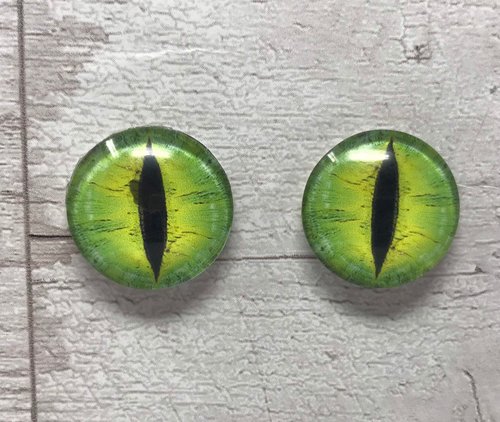 Green glass eye cabochons in sizes 6mm to 40mm posts dragon eyes cat iris (011)